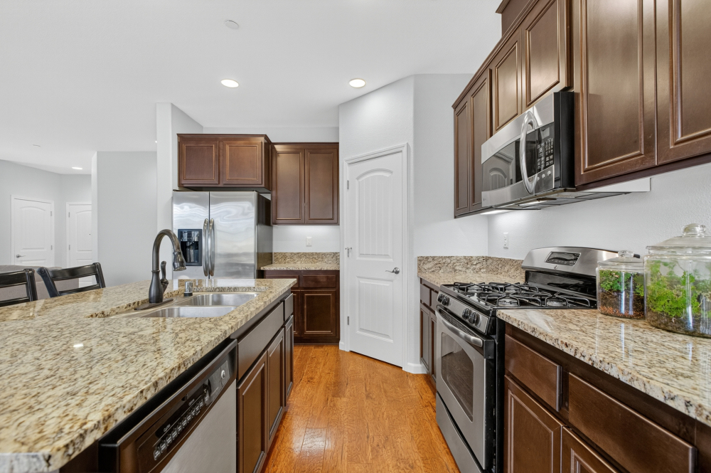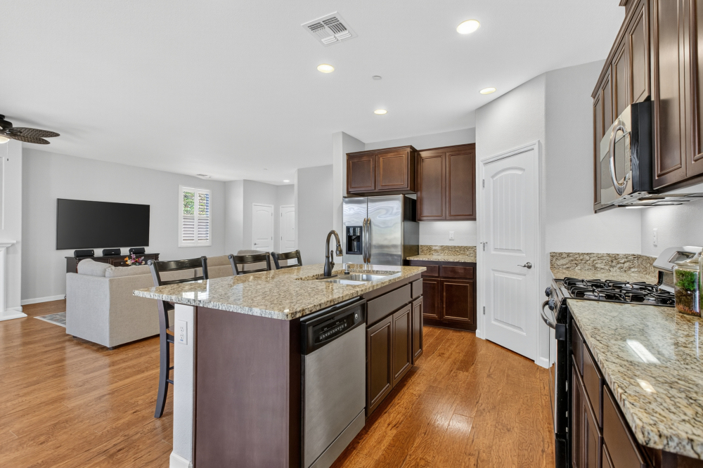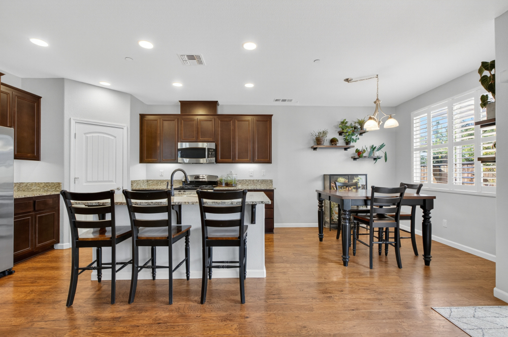 Welcome to this charming 3-bedroom, 2-bath single-story home offering 1,768 sq ft of comfortable living space on a quiet, court-like street. With its larger-than-average lot, fenced front courtyard, and beautifully maintained landscaping, this home offers more space, privacy, and value than you'd expect at this price. Step inside to find an inviting open floor plan with warm laminate flooring, freshly cleaned carpet, plantation shutters, and a spacious kitchen featuring granite countertops, stainless steel appliances, and ample cabinetry. The living and dining areas flow seamlessly, creating an ideal setup for both everyday living and entertaining. Enjoy your morning coffee or evening gatherings under the covered patio overlooking the serene backyard with room to garden, play, or relax. Thoughtfully maintained and move-in ready, this home shows true pride of ownership. Conveniently located near parks, top-rated schools, shopping, and major commuter routes, it's the perfect blend of comfort, value, and convenience.
