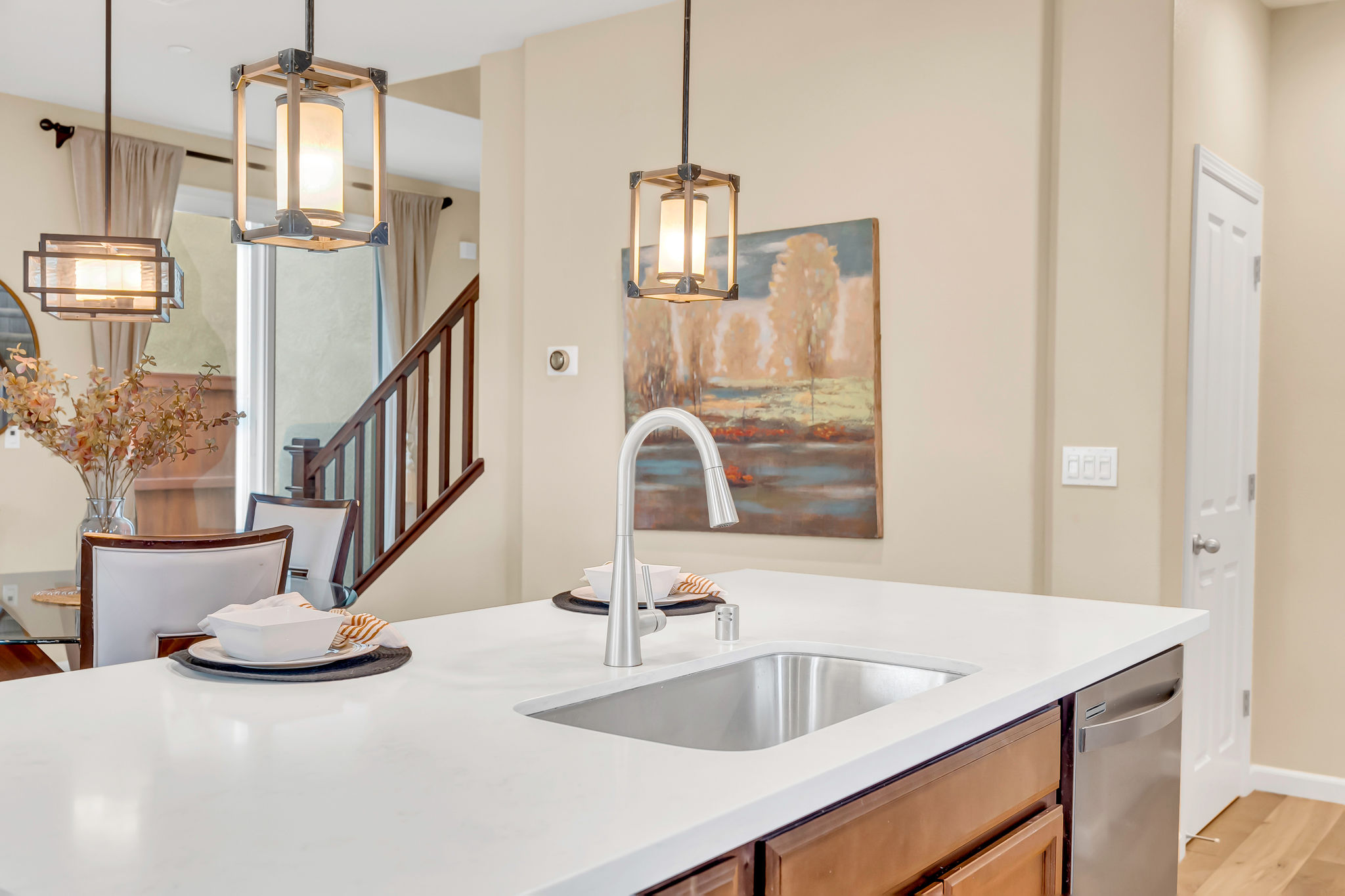 One bedroom and full bath are downstairs making the perfect guest space! The open kitchen features quartz counters, a large island with sink, extended cabinetry, and a double oven.
